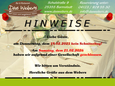 © Bar & Restaurant Das Webers 2015 - 2025 design by Thorsten Mexner