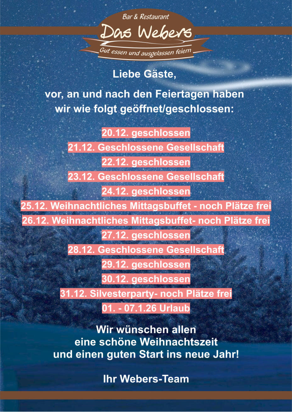 © Bar & Restaurant Das Webers 2015 - 2025 design by Thorsten Mexner